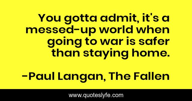 This page presents the quote "You gotta admit, it's a messed-up world when going to war is safer than staying home.". Author of this quote is Paul Langan, The Fallen. .