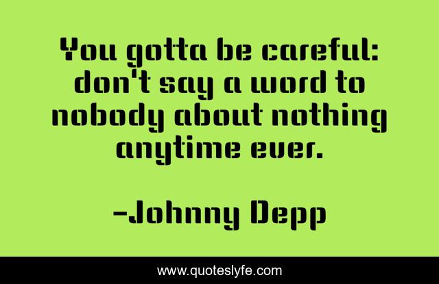This page presents the quote "You gotta be careful: don't say a word to nobody about nothing anytime ever.". Author of this quote is Johnny Depp. This quote is about funny, careful, comedy, silence, talking,.
