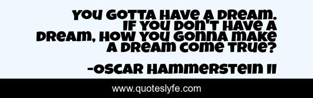 This page presents the quote "You gotta have a dream. If you don't have a dream, how you gonna make a dream come true?". Author of this quote is Oscar Hammerstein II. This quote is about dream, true,.