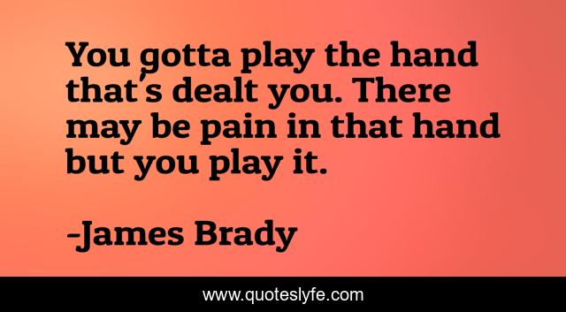 This page presents the quote "You gotta play the hand that's dealt you. There may be pain in that hand but you play it.". Author of this quote is James Brady. .
