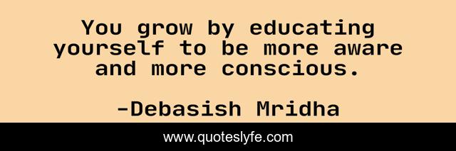 This page presents the quote "You grow by educating yourself to be more aware and more conscious.". Author of this quote is Debasish Mridha. This quote is about be-more-conscious, philosophy, debasish-mridha, grow-by-educating-yourself, quotes, inspirational, enthusiasm, education, debasish-mridha-m-d,.