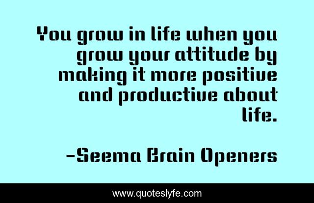 This page presents the quote "You grow in life when you grow your attitude by making it more positive and productive about life.". Author of this quote is Seema Brain Openers. This quote is about behaviour, attitude, growth, success,.