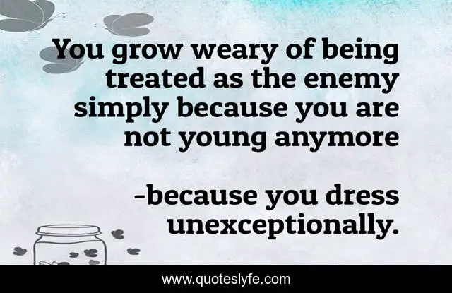 "because you dress unexceptionally. Quotes." Quoteslyfe.com, 2025. Sat. 06 Dec. 2025. <https://www.quoteslyfe.com/quote/You-grow-weary-of-being-treated-as-224291>.