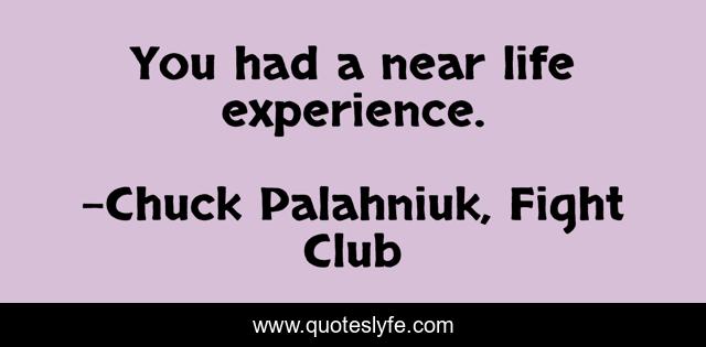 "Chuck Palahniuk, Fight Club Quotes." Quoteslyfe.com, 2025. Sat. 06 Dec. 2025. <https://www.quoteslyfe.com/quote/You-had-a-near-life-experience-158551>.
