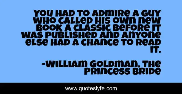This page presents the quote "You had to admire a guy who called his own new book a classic before it was published and anyone else had a chance to read it.". Author of this quote is William Goldman, The Princess Bride. This quote is about humor, authors,.