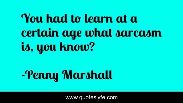 This page presents the quote "You had to learn at a certain age what sarcasm is, you know?". Author of this quote is Penny Marshall. .