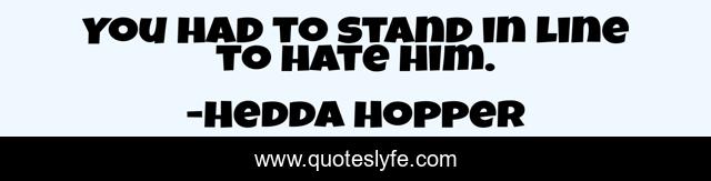 This page presents the quote "You had to stand in line to hate him.". Author of this quote is Hedda Hopper. This quote is about hatred, humor, hollywood,.