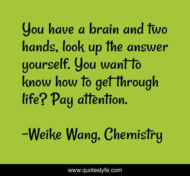 This page presents the quote "You have a brain and two hands, look up the answer yourself. You want to know how to get through life? Pay attention.". Author of this quote is Weike Wang, Chemistry. .