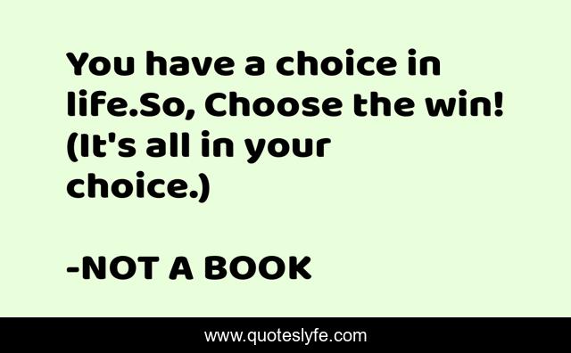 This page presents the quote "You have a choice in life.So, Choose the win! (It's all in your choice.)". Author of this quote is NOT A BOOK. This quote is about win, life, choice,.