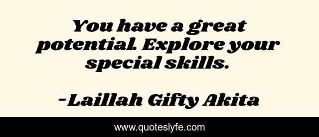 This page presents the quote "You have a great potential. Explore your special skills.". Author of this quote is Laillah Gifty Akita. This quote is about skills, talents, potential,.