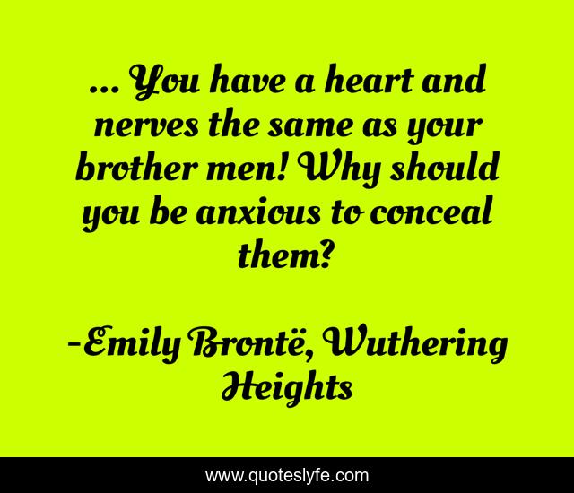 "Emily Brontë, Wuthering Heights Quotes." Quoteslyfe.com, 2025. Fri. 05 Dec. 2025. <https://www.quoteslyfe.com/quote/You-have-a-heart-and-nerves-the-161946>.