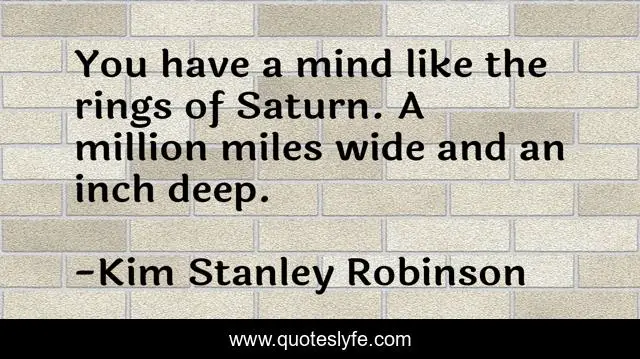 This page presents the quote "You have a mind like the rings of Saturn. A million miles wide and an inch deep.". Author of this quote is Kim Stanley Robinson. This quote is about funny, gibe, comedy, insult,.