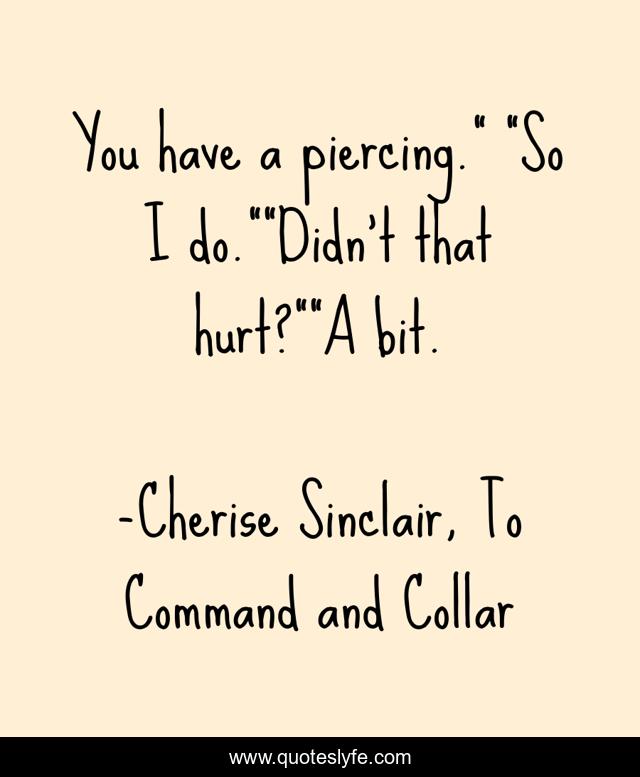 "Cherise Sinclair, To Command and Collar Quotes." Quoteslyfe.com, 2025. Fri. 05 Dec. 2025. <https://www.quoteslyfe.com/quote/You-have-a-piercing-So-I-do-214181>.