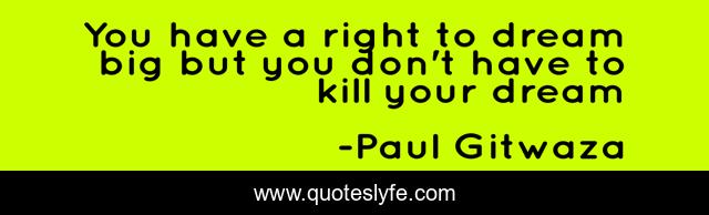 "Paul Gitwaza Quotes." Quoteslyfe.com, 2025. Sat. 06 Dec. 2025. <https://www.quoteslyfe.com/quote/You-have-a-right-to-dream-big-197434>.