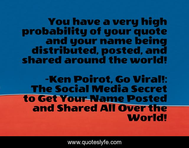 "Ken Poirot, Go Viral!: The Social Media Secret to Get Your Name Posted and Shared All Over the World! Quotes." Quoteslyfe.com, 2025. Fri. 05 Dec. 2025. <https://www.quoteslyfe.com/quote/You-have-a-very-high-probability-of-90369>.