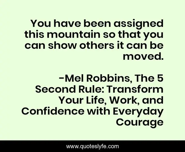 "Mel Robbins, The 5 Second Rule: Transform Your Life, Work, and Confidence with Everyday Courage Quotes." Quoteslyfe.com, 2025. Fri. 05 Dec. 2025. <https://www.quoteslyfe.com/quote/You-have-been-assigned-this-mountain-so-32565>.