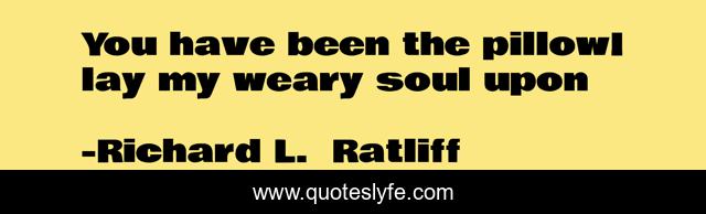 This page presents the quote "You have been the pillowI lay my weary soul upon". Author of this quote is Richard L. Ratliff. This quote is about love, soulmates, upon, soul, weary, lay, pillow, affection,.
