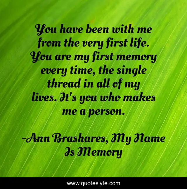 "Ann Brashares, My Name Is Memory Quotes." Quoteslyfe.com, 2025. Sun. 14 Dec. 2025. <https://www.quoteslyfe.com/quote/You-have-been-with-me-from-the-1594>.