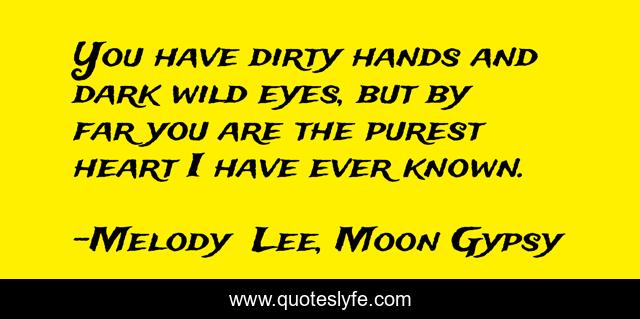 This page presents the quote "You have dirty hands and dark wild eyes, but by far you are the purest heart I have ever known.". Author of this quote is Melody Lee, Moon Gypsy. This quote is about relationships, love, poetry, affection, inspiration,.