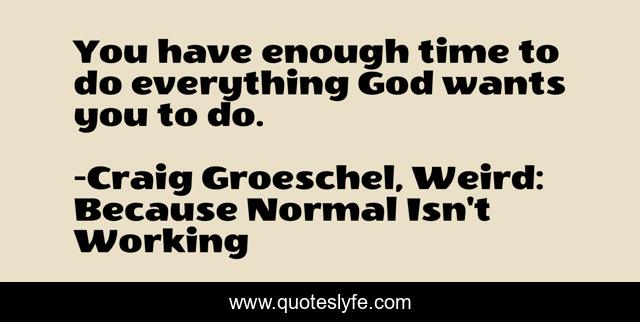 This page presents the quote "You have enough time to do everything God wants you to do.". Author of this quote is Craig Groeschel, Weird: Because Normal Isn't Working. This quote is about wants, everything, god, to, enough, have, time,.