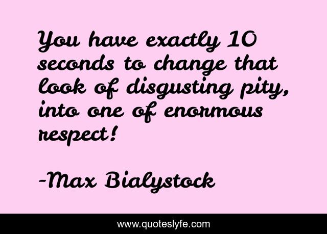 This page presents the quote "You have exactly 10 seconds to change that look of disgusting pity, into one of enormous respect!". Author of this quote is Max Bialystock. .