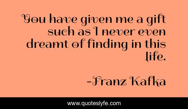 This page presents the quote "You have given me a gift such as I never even dreamt of finding in this life.". Author of this quote is Franz Kafka. .