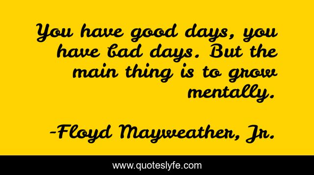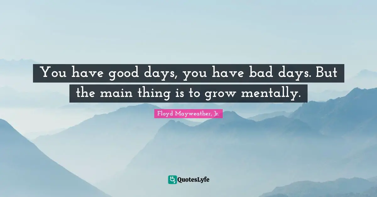 This page presents the quote "You have good days, you have bad days. But the main thing is to grow mentally.". Author of this quote is Floyd Mayweather, Jr.. This quote is about bad days, grow,.