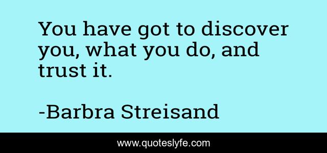 This page presents the quote "You have got to discover you, what you do, and trust it.". Author of this quote is Barbra Streisand. This quote is about got, discover,.