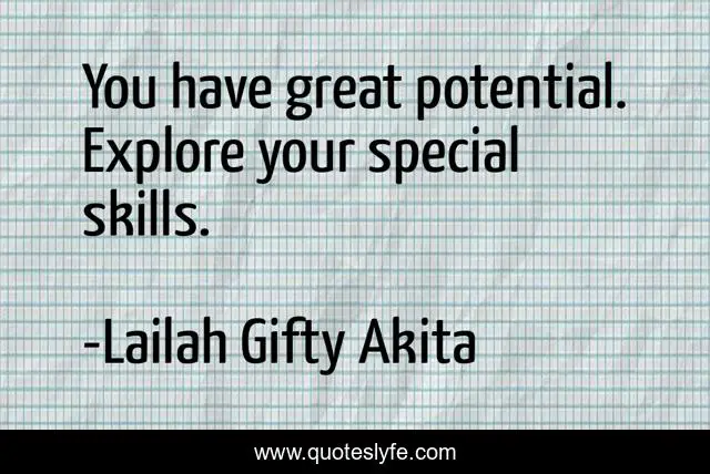 "Lailah Gifty Akita Quotes." Quoteslyfe.com, 2025. Sat. 06 Dec. 2025. <https://www.quoteslyfe.com/quote/You-have-great-potential-Explore-your-special-229935>.