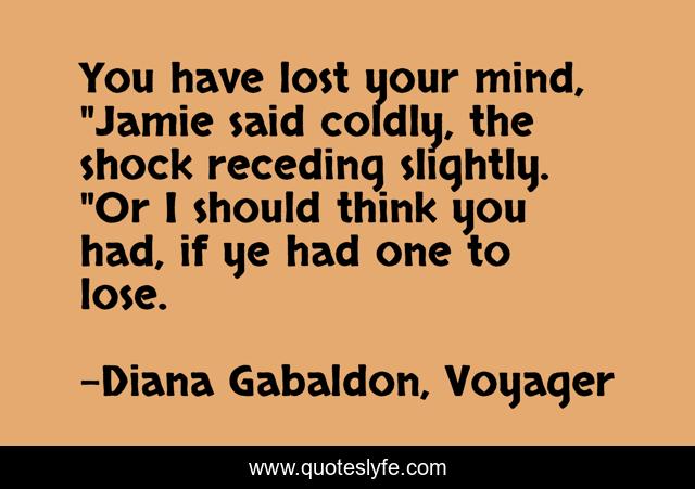 This page presents the quote "You have lost your mind, "Jamie said coldly, the shock receding slightly. "Or I should think you had, if ye had one to lose.". Author of this quote is Diana Gabaldon, Voyager. .