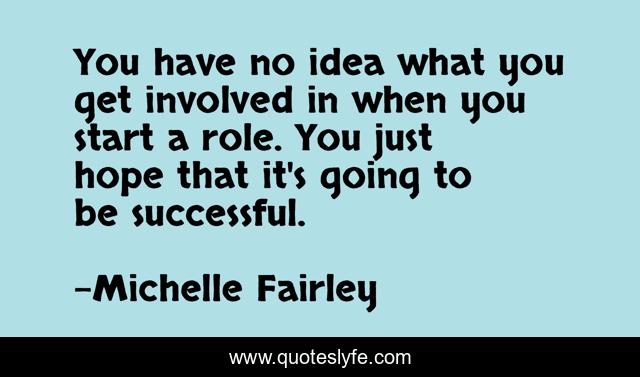 This page presents the quote "You have no idea what you get involved in when you start a role. You just hope that it's going to be successful.". Author of this quote is Michelle Fairley. This quote is about successful, start,.