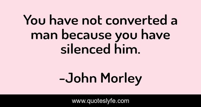 This page presents the quote "You have not converted a man because you have silenced him.". Author of this quote is John Morley. .