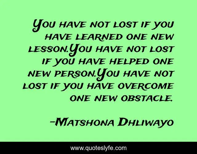 "Matshona Dhliwayo Quotes." Quoteslyfe.com, 2025. Fri. 05 Dec. 2025. <https://www.quoteslyfe.com/quote/You-have-not-lost-if-you-have-98349>.