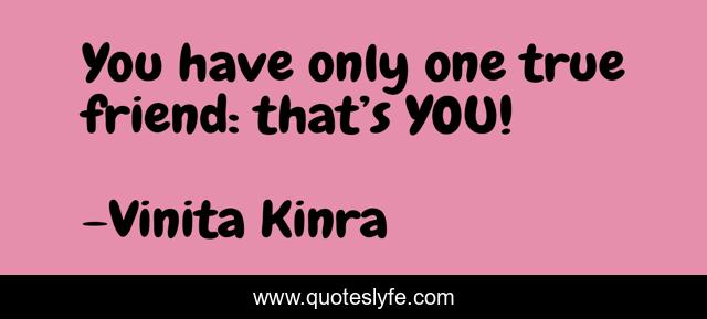 This page presents the quote "You have only one true friend: that’s YOU!". Author of this quote is Vinita Kinra. This quote is about enthusiasm, inspirational,.
