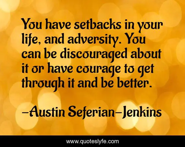 This page presents the quote "You have setbacks in your life, and adversity. You can be discouraged about it or have courage to get through it and be better.". Author of this quote is Austin Seferian-Jenkins. This quote is about better, life, adversity,.