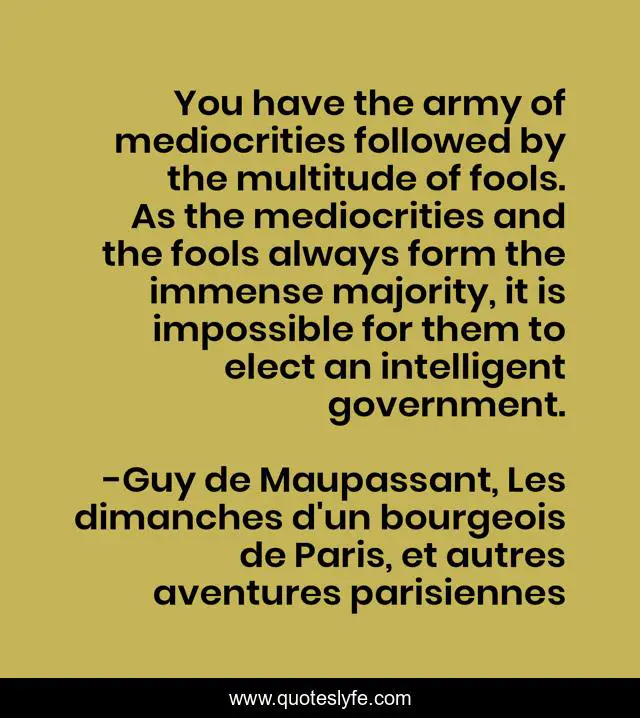 "Guy de Maupassant, Les dimanches d'un bourgeois de Paris, et autres aventures parisiennes Quotes." Quoteslyfe.com, 2025. Fri. 05 Dec. 2025. <https://www.quoteslyfe.com/quote/You-have-the-army-of-mediocrities-followed-174310>.