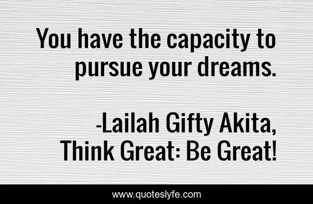 "Lailah Gifty Akita, Think Great: Be Great! Quotes." Quoteslyfe.com, 2025. Fri. 05 Dec. 2025. <https://www.quoteslyfe.com/quote/You-have-the-capacity-to-pursue-your-34669>.