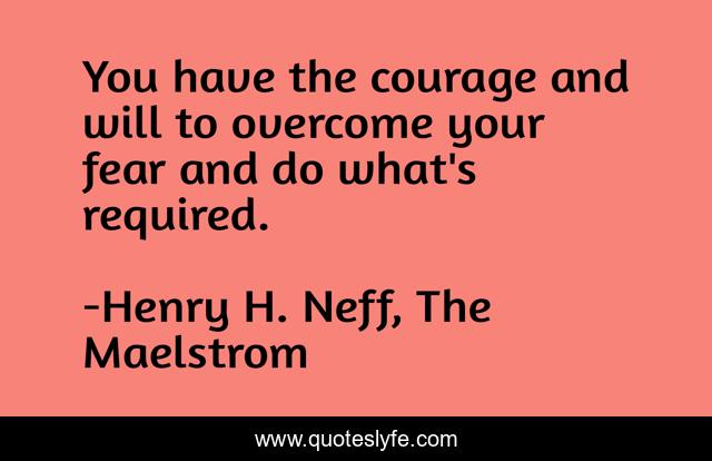 This page presents the quote "You have the courage and will to overcome your fear and do what's required.". Author of this quote is Henry H. Neff, The Maelstrom. This quote is about overcome-fear, courage,.