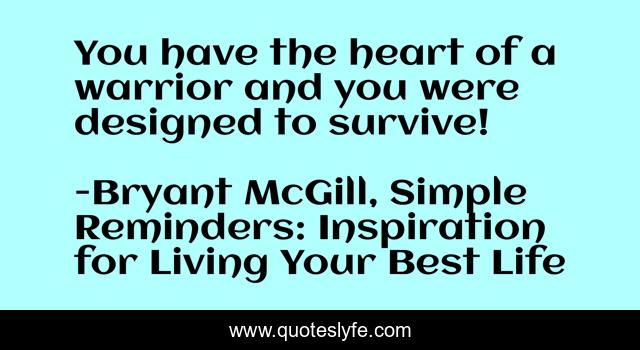This page presents the quote "You have the heart of a warrior and you were designed to survive!". Author of this quote is Bryant McGill, Simple Reminders: Inspiration for Living Your Best Life. This quote is about surivival, spirituality, growth, strength,.