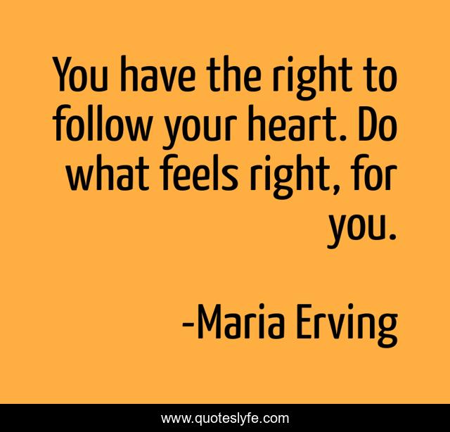 This page presents the quote "You have the right to follow your heart. Do what feels right, for you.". Author of this quote is Maria Erving. This quote is about trust-your-heart, intuition, follow-your-heart, trust-yourself,.