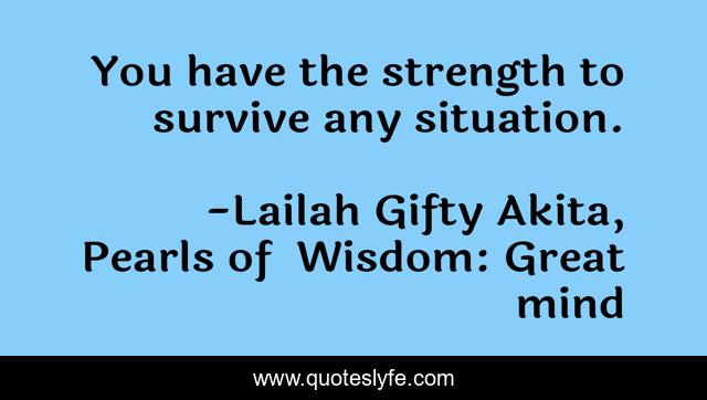 "Lailah Gifty Akita, Pearls of Wisdom: Great mind Quotes." Quoteslyfe.com, 2025. Fri. 05 Dec. 2025. <https://www.quoteslyfe.com/quote/You-have-the-strength-to-survive-any-94807>.