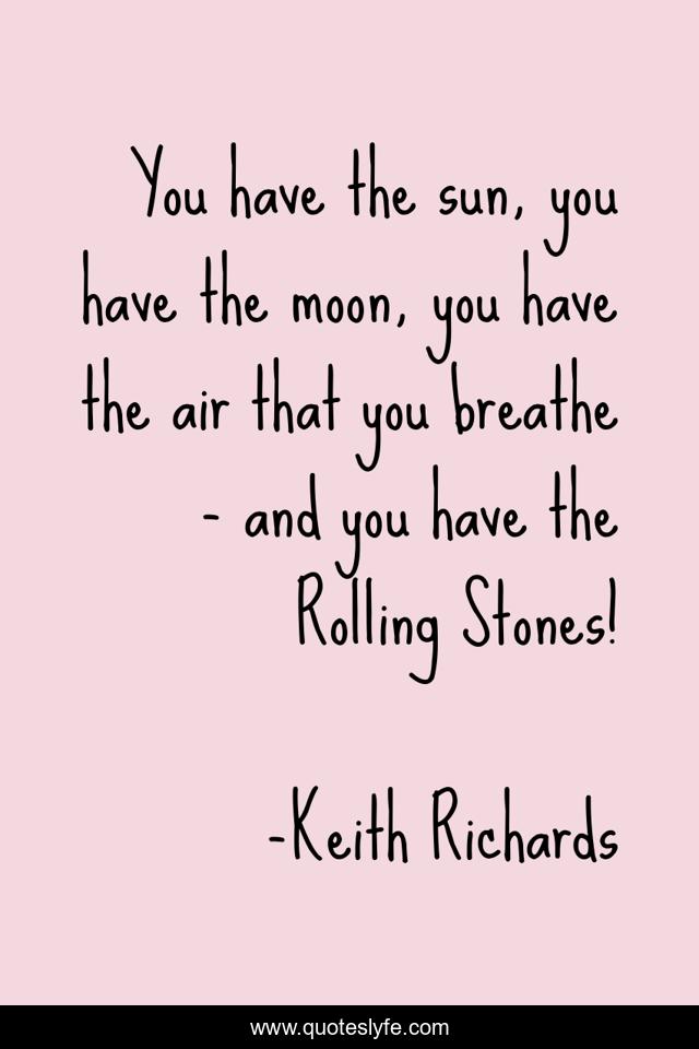 This page presents the quote "You have the sun, you have the moon, you have the air that you breathe - and you have the Rolling Stones!". Author of this quote is Keith Richards. This quote is about sun, moon,.