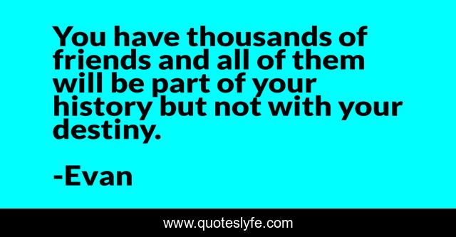 This page presents the quote "You have thousands of friends and all of them will be part of your history but not with your destiny.". Author of this quote is Evan. This quote is about destiny, history,.