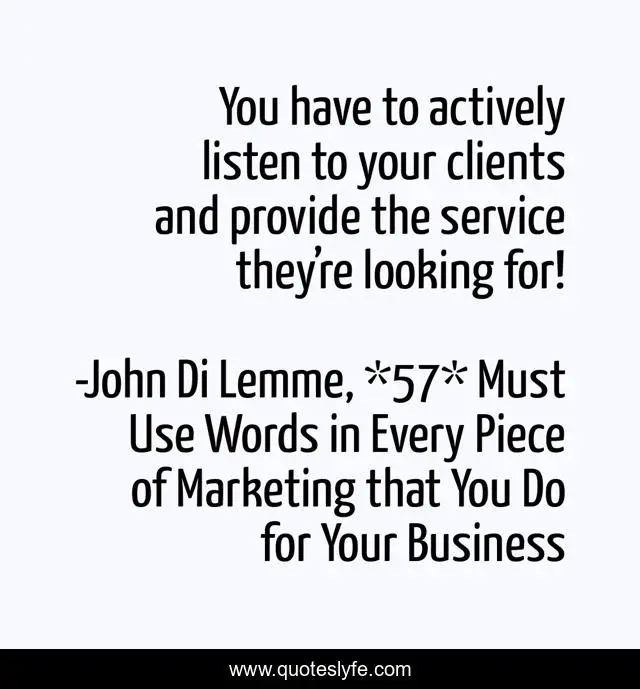 "John Di Lemme, *57* Must Use Words in Every Piece of Marketing that You Do for Your Business Quotes." Quoteslyfe.com, 2025. Fri. 05 Dec. 2025. <https://www.quoteslyfe.com/quote/You-have-to-actively-listen-to-your-47708>.