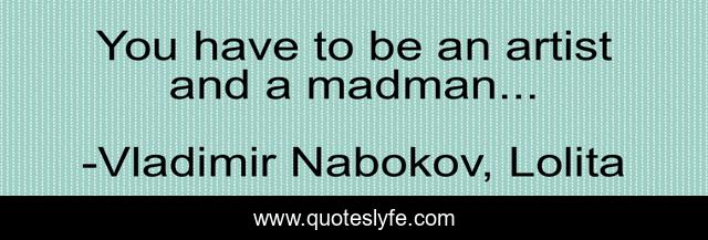 This page presents the quote "You have to be an artist and a madman...". Author of this quote is Vladimir Nabokov, Lolita. This quote is about enthusiasm, life, philosophy, truth-of-life, inspirational,.