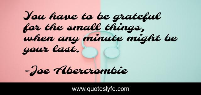 This page presents the quote "You have to be grateful for the small things, when any minute might be your last.". Author of this quote is Joe Abercrombie. This quote is about enthusiasm, philosophy-of-life, inspirational,.