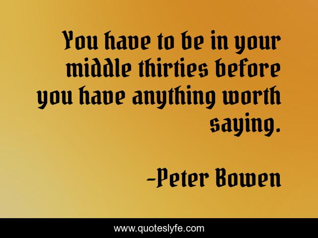 This page presents the quote "You have to be in your middle thirties before you have anything worth saying.". Author of this quote is Peter Bowen. This quote is about writers-on-writing, anything, writing-advice, writing, worth-saying, to-be-a-great-writer,.