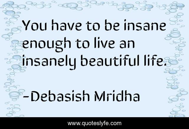 This page presents the quote "You have to be insane enough to live an insanely beautiful life.". Author of this quote is Debasish Mridha. This quote is about beautiful-life, how-to-have-a-beautiful-life, philosophy, debasish-mridha, be-insane-enough, quotes, inspirational, enthusiasm, debasish-mridha-m-d,.