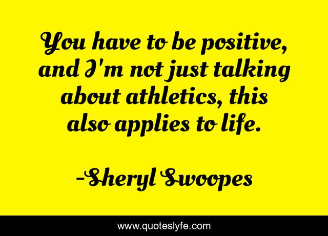 This page presents the quote "You have to be positive, and I'm not just talking about athletics, this also applies to life.". Author of this quote is Sheryl Swoopes. This quote is about talking, life,.