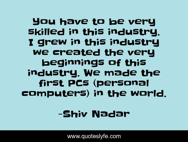 This page presents the quote "You have to be very skilled in this industry. I grew in this industry we created the very beginnings of this industry. We made the first PCs (personal computers) in the world.". Author of this quote is Shiv Nadar. This quote is about personal, world,.